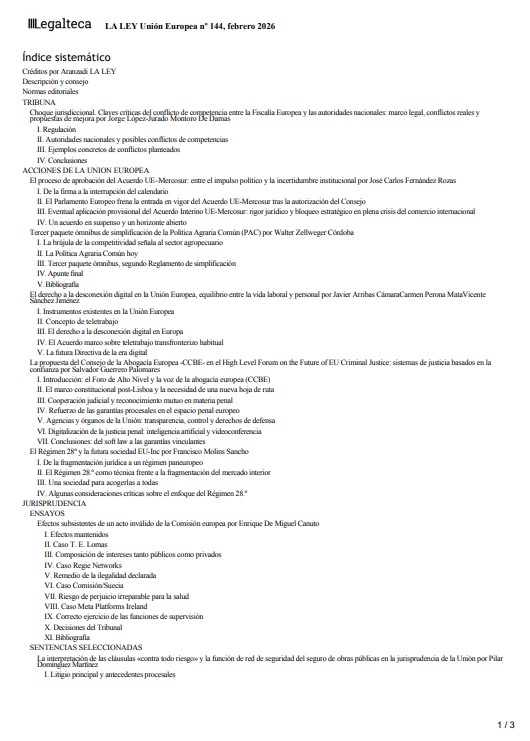 LA LEY Unión Europea. Número 144, Febrero 2026