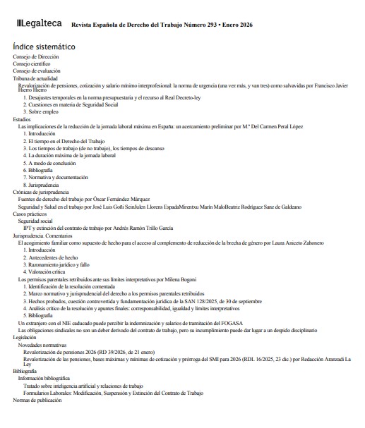 Revista Española de Derecho del Trabajo. Número 293, enero 2026