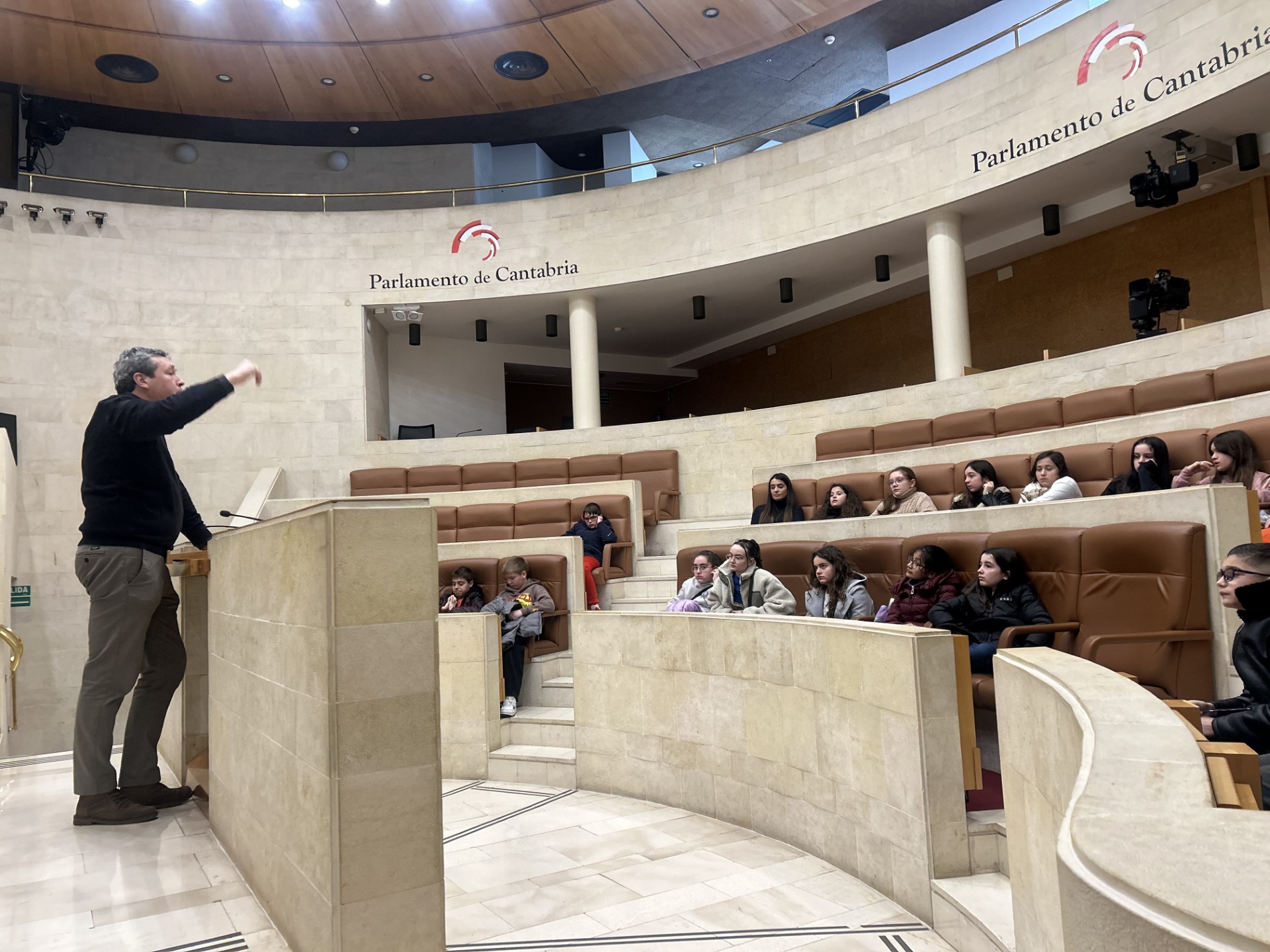 Una veintena de alumnos de 6º del CC Miguel Bravo -La Salle de Santander han visitado el Parlamento de Cantabria, dentro del programa Escuela en Democracia.