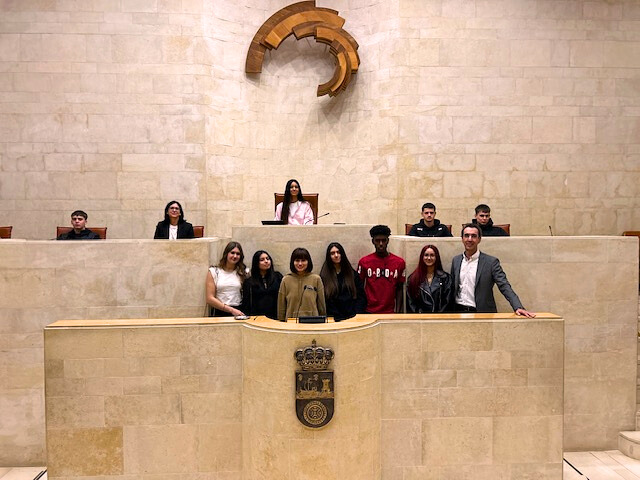 Una decena de alumnos de 2º de Administración y Gestión del IES Augusto G. Linares de Santander han visitado este martes del Parlamento de Cantabria, dentro del programa Escuela en Democracia.