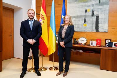 La presidenta del Parlamento de Cantabria, María José González Revuelta, ha recibido esta mañana al alcalde de la ciudad ucraniana de Jersón, Bielobrov Vitalii.