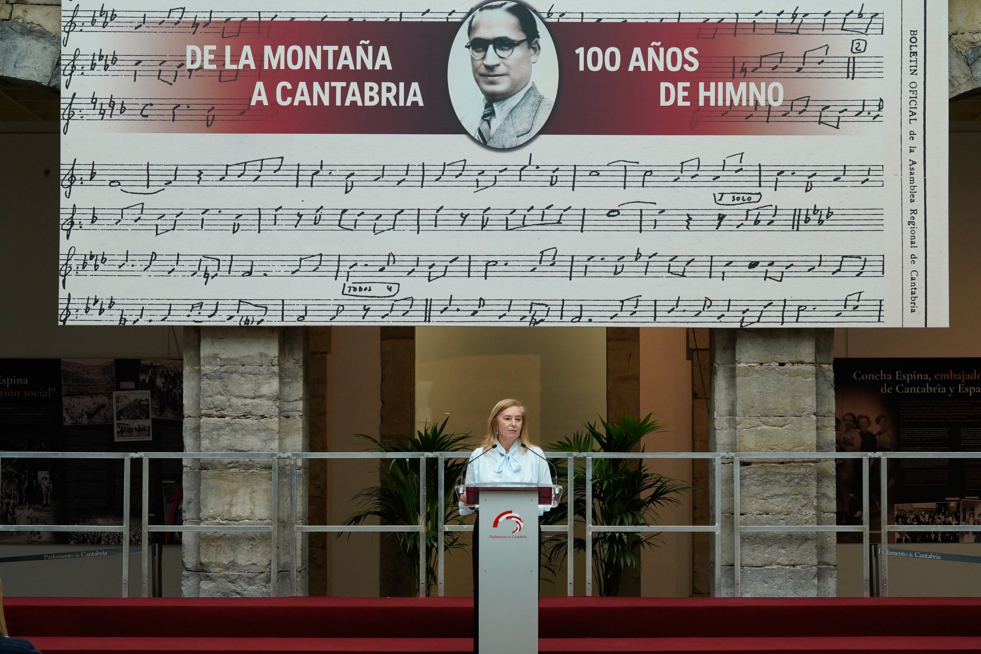 En su intervención, la presidenta del Parlamento evocó otros aniversarios relevantes de la historia y la cultura regional como el centenario del Himno a la Montaña, compuesto por Juan Guerrero Urriesti y convertido en Himno a Cantabria en 1987, tras la iniciativa de un grupo parlamentario en 1986.