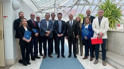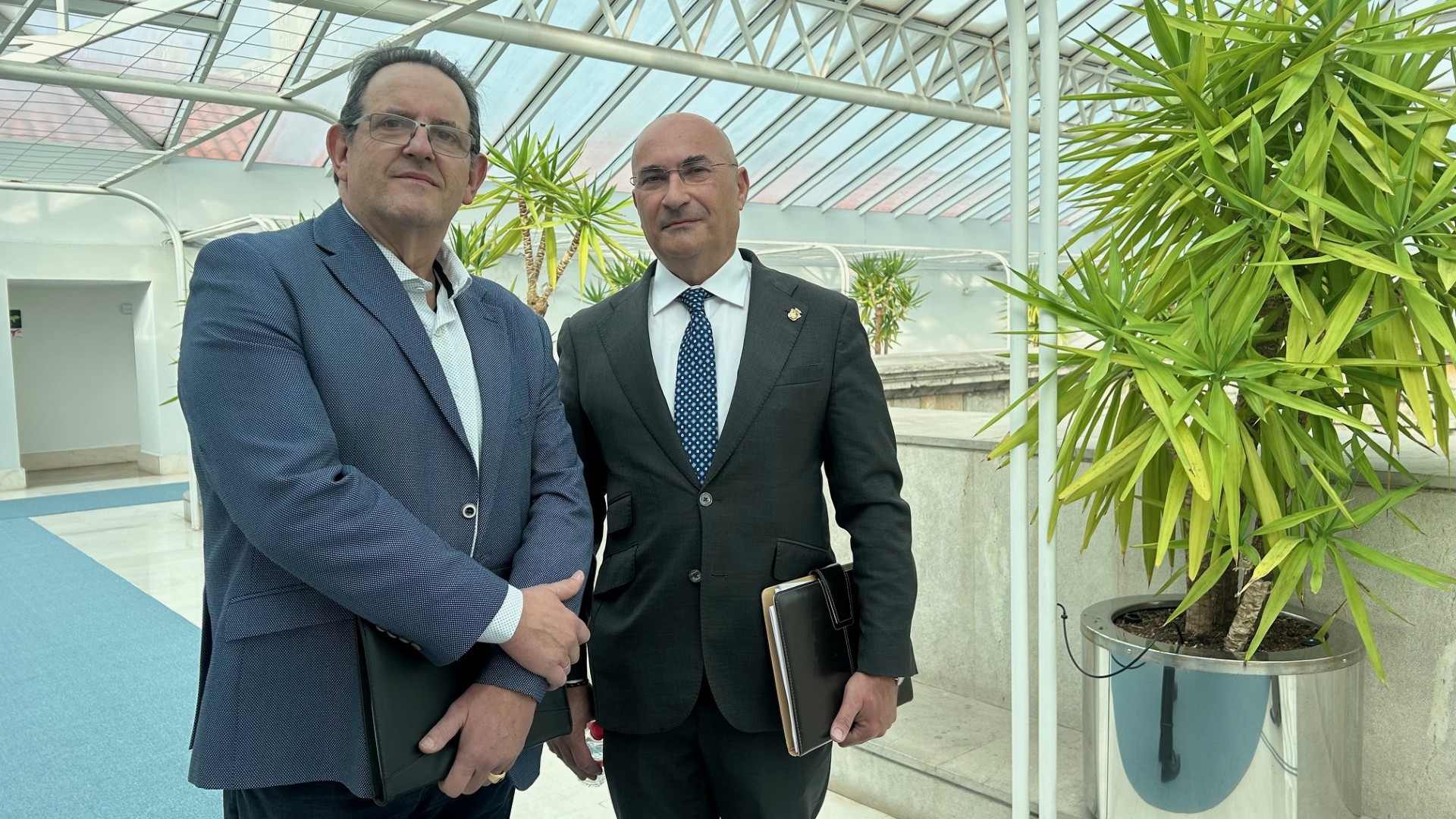 Ángel León, presidente del Consejo General de los Colegios Oficiales de Agentes de la Propiedad Inmobiliaria (Coapi), y Agustín Martínez, presidente de la Asociación de Inmobiliarias de Cantabria (AFILIA), comparecen en la Comisión de Fomento, Vivienda, Ordenación del Territorio y Medio Ambiente para exponer su visión sobre el proyecto de ley de Vivienda de Cantabria.