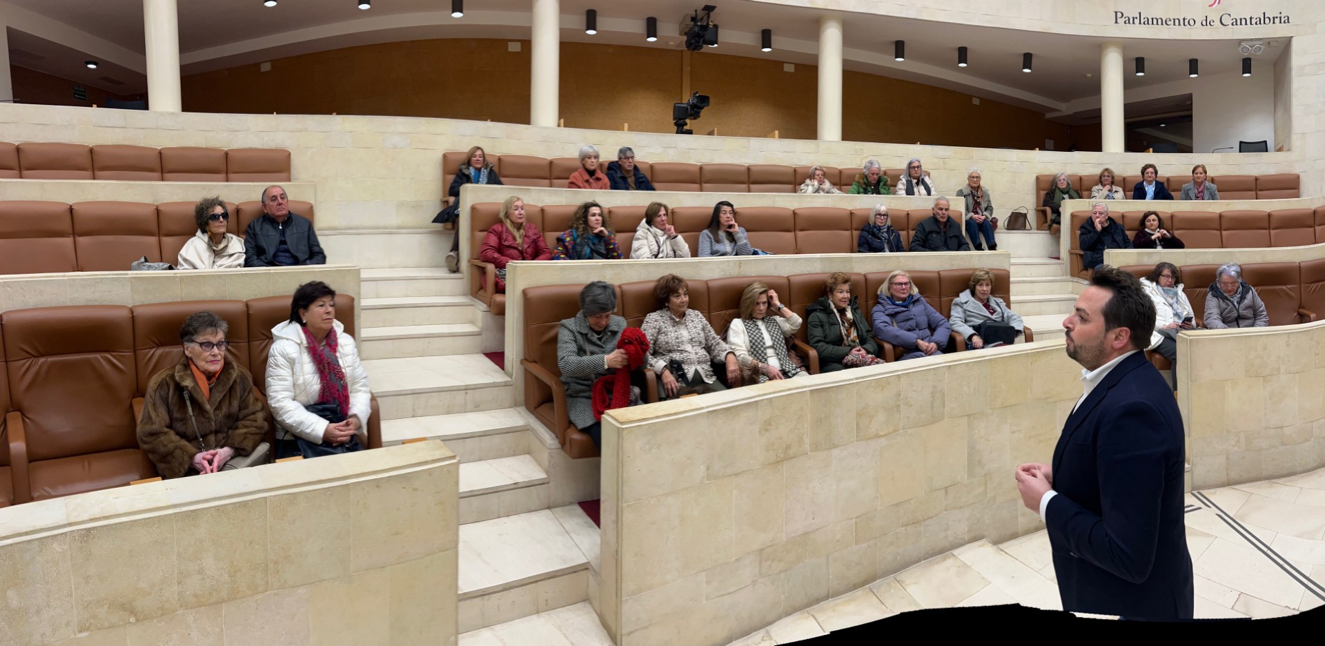 El grupo formado por unas sesenta personas pudo acercarse tanto a la figura de una de las grandes escritoras cántabras como al trabajo diario que se desarrolla en el Parlamento.